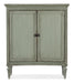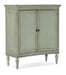 Capturing the vintage charm of the coastal South, the Charleston Two-Door Accent Chest has two doors with soft-close hinges and decorative fretwork accents along the edges of the case. Crafted of Maple Veneers, the cabinet is finished in a weathered Verdigris Green, also known as “true Charleston green,” a color seen in the Low Country as the result of the natural patina formed when copper is exposed to air and seawater. The loop pull hardware is in an antique pewter color. One adjustable shelf behind the doors.