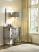 Graceful and romantic, this enchanting soft gray chest is offered in a vintage French style with exquisite design details like gold leafing, shapely cabriole legs and a gold-leaf ornamental keyhole escutcheon on each drawer. Crafted of Poplar Solids and Gold Leaf, it features two drawers and is a compact 30 inches wide.