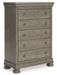 Traditional design motifs, redefined for today’s trends. Inspired by timeless Louis Philippe styling, this chest of drawers is distinguished by its stunning attention to detail. You’ll find the light gray finish encourages an attitude of laid-back luxury. Complete with spacious storage, it reigns over your bedroom with an air of casual elegance.
