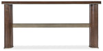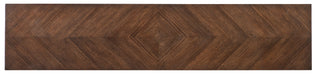 Classy and timeless, the Contours Console combines Walnut Veneer construction in a matched veneer pattern on top with a champagne-finished stretcher and accent trim. Featuring a narrow rectangle shape and concave-shaped legs, it has a narrow rectangle shape measuring 68 inches wide x 15 inches deep.