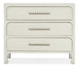 Inspired by casual waterfront living with a chic sophistication, the Cruiser Accent Chest is crafted of Wood and Raffia and finished in Sand Dollar, a white lacquered grasscloth. Chow-style legs and light champagne-colored decorative bar pulls add a designer touch.