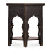 A hexagon shape and carved scalloped legs with arched motifs around the circumference of the Americana End Table exudes the genteel spirit of a simpler time. Crafted of Oak Veneers, it is finished in Molasses, capturing the essence of a well-loved heirloom in a deep dark tone. One fixed shelf.