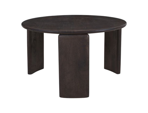 Solid mango wood grain shows beautifully through the rich mocha finish of this table. The rounded edges on the thick table and the legs creates a w...
