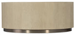 Inject a sense of calm and tranquility into you living space with the soft and stylish round-shaped Cascade Cocktail Table combining Oak Veneers in a tactile taupe finish with dry brushing and a champagne-colored metal base to add a touch of sparkle.