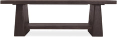 The Burnt Timber finish, dark and moody, gives this rectangular cocktail table a dramatic character. With its double pedestal base and sturdy fixed shelf, it blends rustic sophistication with modern function, perfect for a design-conscious living space.