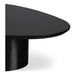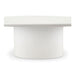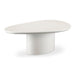 The Eden coffee table features a rounded triangular shape and oval pedestal base, creating a sculptural silhouette that exudes modern sophistication. An ivory white and black high gloss finishes this coffee table's surface, reflecting light, brightening and opening up any space.