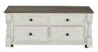 - Two-tone finish; distressed weathered gray top with distressed vintage white base