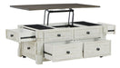 Havalance - Lift Top Cocktail Table with Storage Drawers - White / Gray