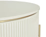 This luxurious lift-top coffee table will bring a sculptural spirit to any space. The curved frame, finished in high gloss cream, is contrasted with intricate vertical reeding. Gold stainless steel legs and inlay create added definition. Coordinating end table and sideboard also available.