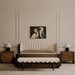 - Fabric wrapped around frame with evenly spaced fabric segments for visual appeal
