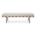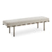 The Carson dining bench features elegant fabric segments over a striking blackened bronze- finished metal frame. Able to complement tables of 70 to 80 inches yet able to transition to living spaces gracefully, its fusion of Performance fabric and foam padding merges comfort with durability.