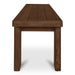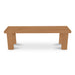 The Marina outdoor bench complements outdoor dining with refined simplicity. This modern slatted bench, crafted from solid teak with a brown finish, matches the silhouette of the Marina dining table. Its clean lines and durable construction make it a versatile seating option for the patio, garden, or poolside area, adding a touch of sophistication to the outdoor space.