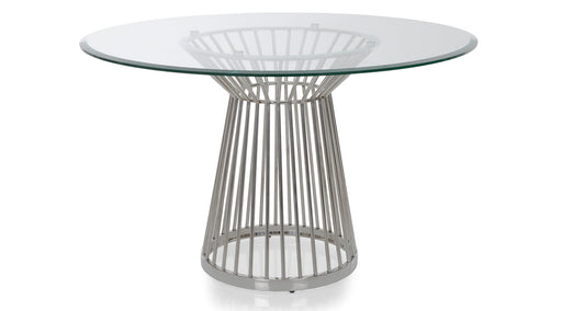 Enjoy a contemporary look in your dining room with this stylishly elegant Alexis chrome dining table. This Meridian Furniture table is made from gl...