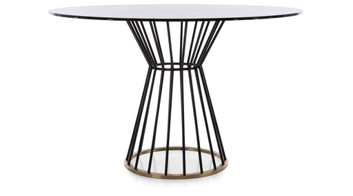 Caputo Round Dining Table – Smoked Glass / Black & Brass Base – “Bellini Collection” Bring contemporary sophistication to your dining space wit...