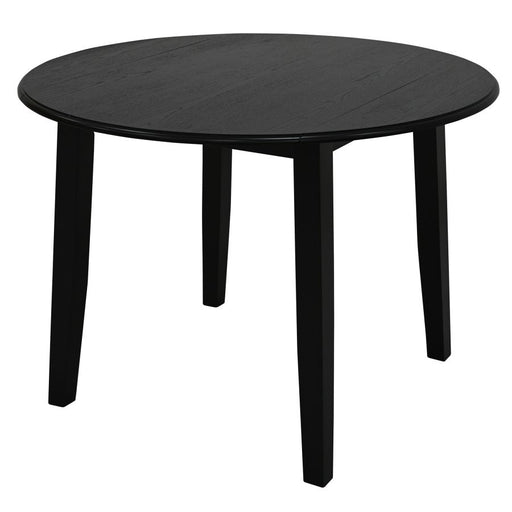 Modern 42" round dining table Drop-leaf design is perfect for smaller spaces, each leaf is 8" Engineered wood table top has walnut finish with vis...