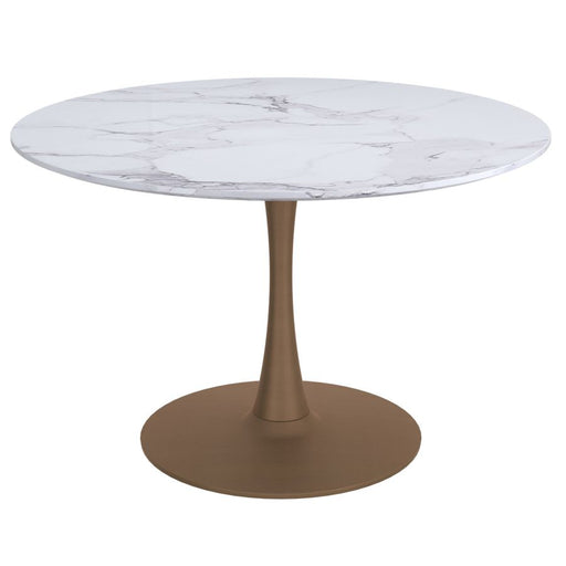 View full detailsZilo 40" Round Dining Table in White Faux Marble and Aged Gold