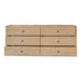 The Gibson 6 drawer dresser's fluid design seamlessly integrates the leg panel into the frame, creating a captivating visual flow. Crafted from solid oak with beautifully grained burl veneer, this piece marries durability with sophistication. Playful lip detailing and 6 soft-close drawers add unexpected charm with its timeless appeal and meticulous craftsmanship.