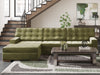 This sleek sectional with chaise offers a highly contemporary look with plenty of space to spread out. Dramatic tufted detailing and luxurious upholstery in a rich olive color create a sophisticated atmosphere. The sectional is perfect for those who love to entertain, or simply relax, in uptown style and comfort.