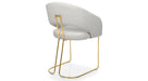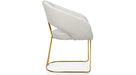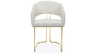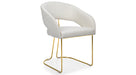 For those who love bold comfort. Its textured bouclé upholstery and sleek gold legs bring a touch of luxury to any space. Whether placed in a cozy reading corner or used as a chic dining chair, this piece is sure to make a statement.