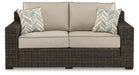 Who says the great outdoors isn’t made for luxury living? This loveseat with cushion offers all the high-end design, plush comfort and durability you could ask for, and then some. Its all-weather, rust-proof aluminum frame provides the easy-breezy wicker look you love without the high maintenance. Rest assured, the high-performing Nuvella® fabric covering the cushions and throw pillows is made to stand up to the elements.