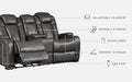 Looking for seating with all the bells and whistles? This loaded power reclining loveseat has you covered. Get double the relaxation—recline your body then adjust your headrest. Pull up the center console to stash your remotes. With USB charging ports, your devices will enjoy this loveseat, too. With four stainless steel cup holders, you’ll have drinks galore. All wrapped up in quality faux leather with fashion-forward jumbo stitching for a look and feel you’ll love.