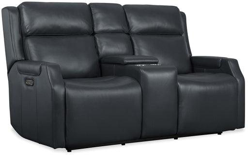 Add functionality and style to your living room with the Nelson Zero Gravity Power Console Loveseat in Salvo Denim finished top-grain leather. With...