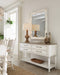 Framed with a delicate scalloped interior edge, the Americana Landscape Mirror reflects a simpler time. With beveled mirror glass, the wood frame is finished in the time-worn white Daisy, representing the natural wear one might expect of pieces passed down through the family over time revealing the rich oak character beneath.