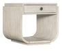 Architectural and timeless with a luxe mixture of materials, the striking Modern Mood Rectangle End Table is crafted of Quartered Oak Veneers with a raffia-wrapped drawer front and top. Featuring rounded sides, the table is finished in Diamond, featuring wire-brush detailing with crystal-like alabaster and pewter hues.
