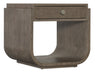 Architectural and timeless with a luxe mixture of materials, the striking Modern Mood Rectangle End Table is crafted of Quartered Oak Veneers with a raffia-wrapped drawer front and top. Featuring rounded sides, the table is finished in Mink, featuring wire-brush detailing with dark, earthy brown hues with notes of black.