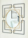 This accent mirror brings a layer of contemporary flair to traditional art deco motifs. Its frame, in a geometric design emphasized by black and goldtone finishes, makes a strong sculptural statement. What a sleekly stylish addition to a living room or entryway.