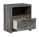 Casually cool style and lots of storage go hand in hand with this nightstand. A weathered finish over replicated oak grain creates an easygoing vibe, setting the scene in your restful retreat. The nightstand's clean lines and modern handles provide a fuss-free look. You’ll find its drawer and cubby to be spacious, and the USB charging keeps up with your high-tech lifestyle.