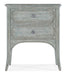 Capturing the vintage charm of coastal locales, the Charleston Two-Drawer Accent Table has an arched design between the understated cabriole legs and framed door fronts. Crafted of Hickory Veneers with solid wood tops, the table is finished in Waterscape Blue, a stain and paint combination with a transparent blue-green coloration, allowing you to see into the natural grain of the wood. The decorative bail pulls have an antique pewter finish with white hang up. Two self-closing drawers.