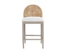 Appreciate the beauty of outdoor living with the Calandri Counter Stool. A softly curved back made with ore grey cane wicker weave pairs beautifully with our soft louis cream outdoor boucle performance fabric, exuding both comfort and style. Performance fabric is moisture repellent, durable and easy to clean.