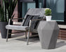 A geometric concrete end table that combines industrial and urban elements. Perfect for contemporary and urban indoor or covered outdoor spaces. Can be paired with coordinating coffee table. Crafted from a natural concrete mix, each piece will look different. Variations in colour, texture, imperfections, surface scratches and non-structural hairline cracks are considered inherent and valued qualities of the material. Suitable for indoor and covered outdoor spaces.