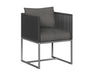 This outdoor dining armchair from our Outdoor by SUNPAN collection will create a sophisticated, outdoor dining space. Features a streamlined design in gracebay grey fabric with dark greymix weave. Finished with a powder coated dark grey aluminum base. Teak wood has a high oil content that enables its outdoor resistant properties. These natural oils may surface and potentially leave teak marks on fabrics upon contact, which can be easily washed away. Visit our Product Care page for more information on how to ensure the lasting beauty of this piece.