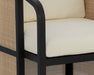The eye-catching curved silhouette of the Palermo Dining Chair is sure to be an appealing addition to any outdoor space. The barrel backrest features a contrast of materials and colours with a combination of cane wicker weave and charcoal teak wood. Comfortable cushioning is upholstered in our stinson cream fabric with sloped arms that give it a floating chair appearance. Teak wood will develop a silver-grey finish over time. Teak wood has a high oil content that enables its outdoor resistant properties. These natural oils may surface and potentially leave teak marks on fabrics upon contact, which can be easily washed away. Visit our Product Care page for more information on how to ensure the lasting beauty of this piece.