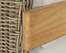 - Solid Teak Wood / Powder Coated Aluminum / Taupe Polyethelene Polyrod Wicker Weave on Taupe Aluminum Frame
