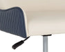 A classic office chair featuring a substantial seat upholstered in contrasting dillon cream and thunder faux leather. Diamond stitching on the seatback adds a hint of elegance while a black powder coated metal base completes the look. Also available in dillon stratus with black faux leather combination. Handle With Care: This design has been crafted with faux leather. Faux leather is manufactured to reflect the natural characteristics of leather; as such, colour variations, markings, wrinkles, grooves, and light scratches are appreciated characteristics. No two pieces will be alike. Visit our Product Care page for more information on how to ensure the lasting beauty of this piece.