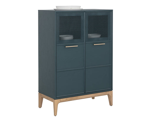 With a timeless design, this mid-century modern highboard is a delightful addition to any space. Crafted with a teal oak veneer for a subtle pop of...