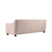 The Amira sofa offers warmth and comfort with its gracefully curved high back and subtly flared arms. Upholstered in durable polyester fabric with piping cushion details. The feather and fiber topped bench seat cushion creates luxurious repose. Generously proportioned lumbar cushions and solid wood feet complete this centerpiece.