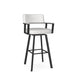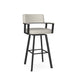 The Albert swivel stool effortlessly adds style and comfort into your daily routine. Its delicate stitching on the backrest adds a refined touch, enhancing its contemporary design. The upholstered seat and gently curved backrest provide optimal comfort, while the 360-degree swivel allows for effortless movement. Padded armrests offer extra support, making it easy to get in and out of your seat. A perfect balance of elegance and functionality, the Albert stool is a stylish addition to any kitchen or bar.