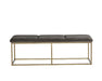 This bench combines transitional style with luxurious elements. Features an exposed rustic bronze steel frame and a piccolo pebble or prosecco performance fabric seat. Performance fabric is moisture repellent, stain resistant and easy to clean.
