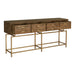 Best describe as a show stopper, the Annecy console table features an art-deco inspired aesthetic with a rustic twist. Made from reclaimed fir wood, it will withstand major wear and tear. Four deep drawers that seem to float above the brass finished frame makes it practical to keep essentials handy and airy at your entry way.