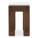 - Solid semi-gloss walnut stained ash with wood joinery detail on the base