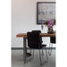 A celebration of nature's artistry, the Bent dining table is expertly crafted from solid acacia wood, exquisitely highlighting the wood's unique knots and whorls through its rustic live edge detailing. Extra small in size, this table's expansive surface features a substantial 2" thickness that gracefully displays the wood's distinct character, while a robust industrial metal base provides a striking contrast.