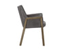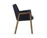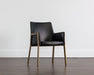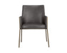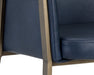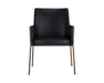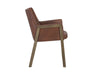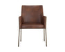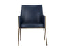 The Bernadette Dining Armchair features a shapely design with an exposed brushed antique brass frame. Upholstered in bravo admiral faux leather for added style and durability. Handle With Care: This design has been crafted with faux leather. Faux leather is manufactured to reflect the natural characteristics of leather; as such, colour variations, markings wrinkles, grooves, and light scratches are appreciated characteristics. No two pieces will be alike. Visit our Product Care page for more information on how to ensure the lasting beauty of this piece.