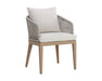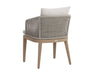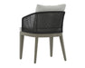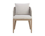 Blur the lines of inside and out with this beautiful outdoor dining chair. This comfortable design features a barrel back frame wrapped in greymix weave and seat cushions in palazzo cream fabric. A drift brown teak wood base completes the look. Teak wood is naturally water, decay, and pest resistant.