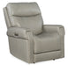 Offered in the sophisticated bone-colored Milton Fog semi-aniline top grain leather cover with stylish contrasting stitch trim, you’d never know the Carroll Power Recliner goes all out for comfort, offering a power headrest, adjustable lumbar support and zero gravity power recline.