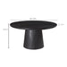 Bold in black with a sandblasted, cerused finish that accentuates the natural wood grain, the Cember dining table adds organic appeal and dramatic presence to any condo or smaller living space. A natural expression of modern rustic style, this piece features an oversized drum-shaped, tapered pedestal base, a solid foundation to a stately silhouette.