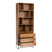Storage solved. The Colvin shelving unit features strong, clean lines complete with iron detailing to accompany its contemporary Scandinavian design. Made of solid mango wood, this unit features a natural unique woodgrain and knot pattern. Four exposed shelves with divided compartments provide optimal storage for your books and person display, while three closed drawers are perfect for keeping media accessories and board games organized.
